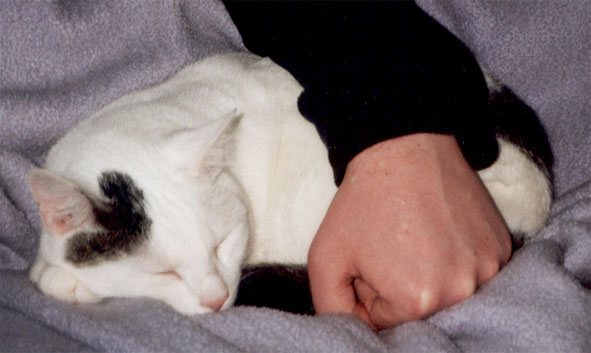 Als wir um 1:15h schlafen gingen und die Katzen riefen, um ihnen ihr Betthupferl zu geben, kam Sammy nicht. Auch das Klappern der Futterpackung brachte ihn nicht dazu, aufzutauchen. Immer hektischer begannen wir Dosis, ihn zu suchen. Schließlich entdeckten wir ihn unter dem Bett. Lang ausgestreckt, als habe er gerade Dehnübungen gemacht, mit offenen Augen und einem halboffenen Maul. Er sah ein bisschen wie eingefroren aus. Sehr schnell war aber deutlich, dass er wirklich tot ist. Wir wissen nicht, was die Ursache für sein plötzliches Ableben war. Er war nicht krank oder anders als sonst und man konnte auch keine Unfallspuren oder ähnliches erkennen. Wir sind völlig fassungslos, dass ein drei Jahre alter Kater so plötzlich sterben kann. Gleichzeitig sind wir aber auch erleichtert, dass er offensichtlich nicht leiden musste und darum einen ziemlich angenehmen Tod sterben konnte. Wer weiß, was ihm dadurch erspart bleibt. Wir vermissen den kleinen Eisbären, sein Maunzen, seine Kuscheligkeit, sein weiches Fell. Dort wo er jetzt ist, geht es ihm gut. Er kann aus Malzpastebrunnen trinken, hat krallenresistente Dosis zum draufrumtrampeln, niemand stört sich daran, wenn er mitten in der Nacht Geschichten erzählt. Wir werden nie vergessen, wie er allmählich immer mutiger wurde. Dass er in letzter Zeit immer häufiger einfach nur albern im Raum rumkullerte und wie konzentriert er jede Art von Insekte jagte. Da war er ein echter Meister. Wir haben ihn so lieb gehabt und er fehlt uns ganz schrecklich. Vielleicht werden wir ihn wirklich einmal wiedersehen. |