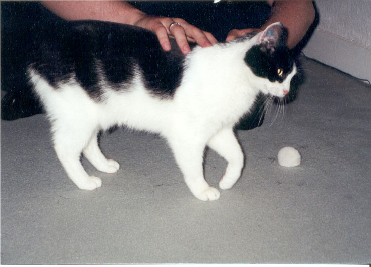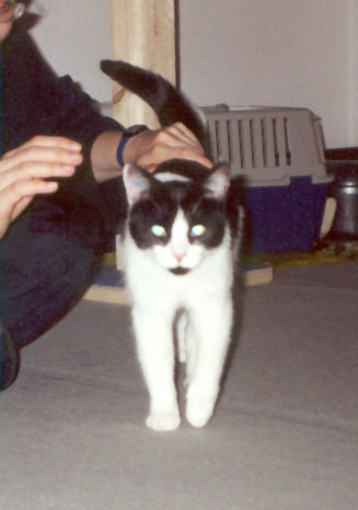| Ganz aufgeregt und angespannt, holten wir am Samstag, den 23.6.01 UNSERE Katze aus dem Tierheim ab. Sie war dort freiwillig in den Transportkorb gegangen und gab während der Fahrt keinen Mucks von sich. Hier zu Hause dauerte es knappe vier Stunden, bis aus dem knurrenden Etwas eine absolut menschenbezogene und schmusebedürftige Katzen geworden war. Wir waren so aufgeregt und froh, dass das alles so gut klappte. | ||