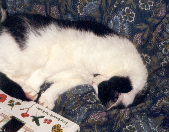 | P.S. Bisher hat das unten gezeigte Bild am Anfang dieser Site gestanden. Bei meinem letzten Besuch im Tierheim haben sich die Katzenhausmitarbeiterinnen diese HP angesehen und die eine sagte erst etwas baff, Snoopy sähe ja genau wie ihre Katze aus, bis ihr dann einfiel, dass das Bild wirklich ihre Katze zeigt. Da Snoopy sich im TH nicht hatte fotografieren lassen, ihrer Katze aber sehr ähnlich sieht, haben sie ein Foto von ihrer Katze genommen. Wenn ich ganz ehrlich bin, fand ich schon, dass Snoopy irgendwie schmaler auf dem Foto aussah *g*. | ||